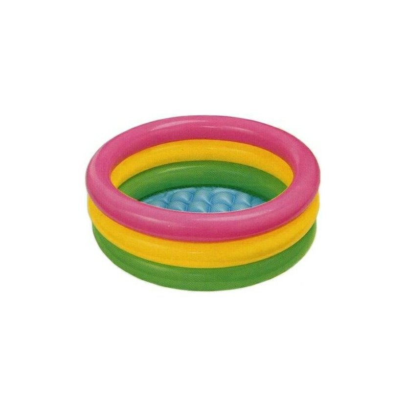 Klasický nafukovací tříkomorový bazének v pastelových barvách.